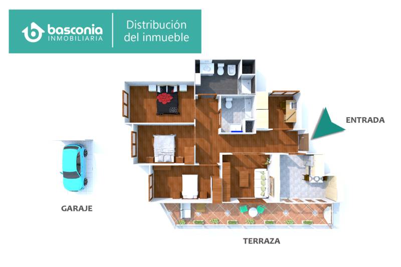 Inmobiliaria Basconia gestiona la venta de vivienda en el centro de Basauri, con amplísima terraza soleada.