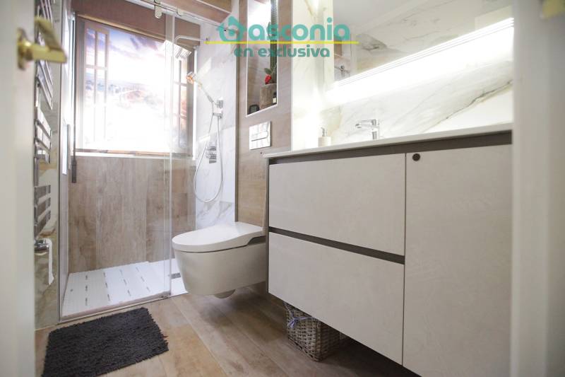 Inmobiliaria Basconia gestiona la venta de vivienda con ascensor en Pozokoetxe exterior y soleada.